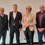 Gesprächspartner beim TourismusDialog zur aktiven Hilfe der Berliner Gastgeber für die Geflüchteten aus der Ukraine waren Thomas Lengfelder, Hauptgeschäftsführer des DEHOGA Berlin, und Frank Rücker, General Manager Hotel Berlin, Berlin. Das Gespräch moderierte der Politikwissenschaftler und Autor Dr. Stefan Elfenbein (r.).