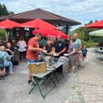 „Die Hasselbacher waren in all den bisherigen Jahren schon mit dem Liederkranz, mit einem Kinderchor, mit den Bürgermeistern und mit Leserreisen auf den Samerberg, dieser ist inzwischen ein beliebtes Ferienziel für viele Stammgäste geworden“ – so Stefan Mühle als Ehrenvorsitzender der FFW Hasselbach beim gemeinsamen Weißwurst-Frühschoppen mit Ziachmusik beim Berggasthof Duftbräu. Weitere Stationen und Programmpunkte waren eine Fahrt auf die Hochries mit Wandertour zur Käseprobe beim Lochnerhof, ein Abend beim Entenwirt, eine Schnapsprobe auf dem Mayerhof in Schilding sowie der Besuch des Tages der offenen Tür bei der Bergwacht Rosenheim-Samerberg. Dort versuchte sich vor allem die Jugend aus der Reihe der Bus-Gesellschaft an der Kletterwand.
