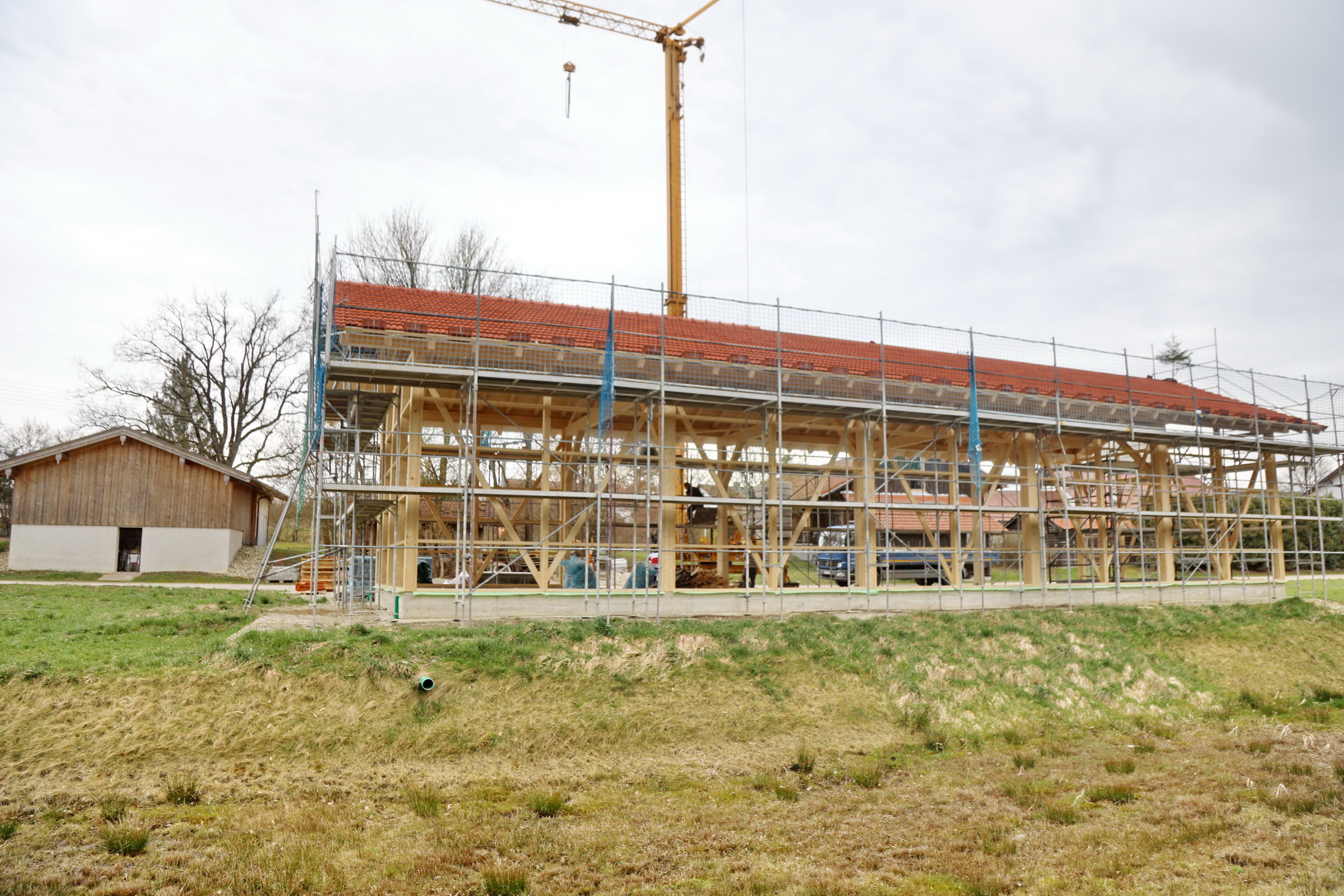 Der Lagerstadel im Trachtenkulturzentrum des Bayerischen Trachtenverbandes in Holzhaussen (Landkreis Landshut) wurde in den letzten Tagen vom Grundgerüst und Dach soweit fertiggestellt.