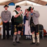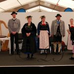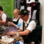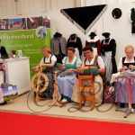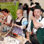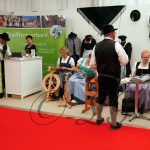 Neben Vorführungen von Handarbeiten, wie Spinnen, Klöppeln, Strumpfstricken, Edelweißschnitzen und Federkielsticken fand heute auch eine Trachtenschau in der Halle 3 / 4 beim Stand des Bayerischen Trachtenverband e. V. statt. Die Erläuterungen und Zusammensetzung der Trachten von den Trachtenvereinen Stamm I- und „Inviertler“ Rosenheim und „Alt Rosenheim“ wurde von Andrea Schneebichler, 1. Trachtenwartin und Walter Weinzierl, Gauehrenvorstand des Bayerischen Inngau Trachtenverbandes durchgeführt. Musikalisch umrahmt wurde die Trachtenschau von der „Heid-Beinand-Musi“.