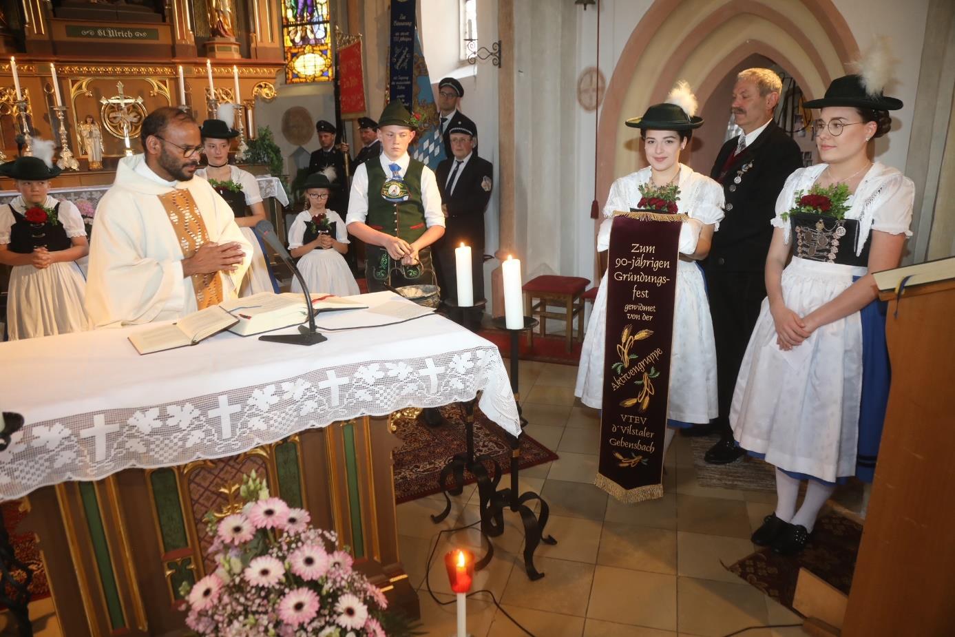 Pfarrvikar Pater Cleetus Unnikunnel segnete das Festband der aktiven Tanzgruppe zur erinnerung an das 90-jährige Vereinsbestehen