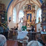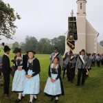 Heuer konnte die langjährige Tradition wieder fortgesetzt werden und trotz starkem Nebel machten sich am Sonntagvormittag viele Vereinsangehörige, sowie einige Pfarreiangehörigen, zu Fuß den Rosenkranz betend auf den Weg zur Filialkirche. Zum Gottesdienst wurden sie von Pfarrer Herbert Weingärtner im mit Blumen geschmückten Gotteshaus begrüßt. In seiner Predigt ging der Geistliche auf das Tagesevangelium ein und bat die Mitfeiernden, sich für die Schwächeren einzusetzen und als Christen verantwortungsvoll zu leben. Zur feierlichen Gestaltung trugen die „Dreierlei Musi“ mit Musikstückl und die Griesstätter Sängerinnen mit passenden Liedern bei. Betend zogen die Trachtlerinnen und Trachtler anschließend wieder nach Griesstätt zurück, wo der Bittgang mit einer kurzen Andacht, gestaltet von Pfarrer Weingärtner, am Feldkreuz in der Innstraße abgeschlossen wurde.