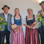 Ehrung-Niedermaier-Kiemer.ovb.jpg: „Das Werk ist vollendet“. Dorothea Niedermaier und Brigitte Kiemer mit der Vereinschronik. Stolz umrahmt von Harry Medl (links, 2. Vorstand) und Andreas Neichl (1. Vorstand, rechts).