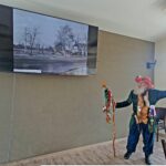 Abschließend dann ein gemütlicher Ausklang des erlebnisreichen Tages bei Kaffee und Kuchen. Dabei gab es noch einen heimatkundlichen Vortrag vom „Grauen  Männlein“ (alias Günter Kalliske) einem Lausitzer Original, unterstützt von seiner reizenden Begleitung „Jutta von Kittlitz“ (alias Veronika Dubau), ebenfalls ein Lausitzer Original. Sehr anschaulich berichtete er vom Wandel seiner Heimat von einer Industrie- zu einer Urlaubsregion, mit all ihren Facetten. Begonnen hat die Industrialisierung um 1871 mit dem Braunkohlebergbau der Ilse Bergbau AG. Später kam dazu, infolge Tonvorkommen, noch die Ziegelindustrie. Nachdem der Tagebau 1999 eingestellt wurde, entstand durch dessen Flutung der Großräschener See. In seinem Vortrag hieß es an dieser Stelle „Das Wasser kommt“, die dabei symbolisch mit alpinen Klängen von einem der bayerischen Trachtler aus Berlin umrahmt wurde. So entwickelte sich Großräschen zu einem touristischen Highlight mit Stadthafen und den IBA-Terrassen. Es entstand eine landschaftlich sehr reizvolle Region mit vielen neuen Seen, dem Lausitzer Seenland, wovon zuvor der Bürgermeister in seiner Begrüßungsrede bereits berichtet hatte.