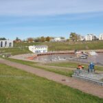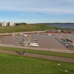 Nach dem gemeinsamen Mittagessen im Restaurant „Haus Vier“, direkt am Hafen, folgte ein Spaziergang durch den modernen Stadthafen und das IBA-Gelände. Dort verkündet seit dem Jahr 2005 die Seebrücke, mit dem Abwurfausleger des letzten Abraumabsetzers, Großräschens Zukunft als Seestadt. Wegen der ungünstigen Wetterprognose entfiel leider die ursprünglich geplante Schifffahrt „Trachten auf dem Wasser“.