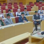 Ilse Aigner, seit 25 Jahren Mitglied im Bayerischen Landtag würdigte in ihrer Begrüßung das Wirken der Trachtlerinnen und Trachtler für das Land Bayern und sie sagte dabei: „Eure Traditionen sind nicht aufgesetzt, Ihr prägt das Bild von Bayern und Deutschland weltweit und das ist gut so“. Mit einem Seitenblick auf die jüngst erfolgte Kritik an ihrem Tragen eines Fuchspelzes sagte sie: „Fuchsstola, Hirschlederne oder Gamsbart – das sind Bestandteile der Tracht und der Traditionen, das muss man verstehen“. Wie die Landtagspräsidentin weiter ausführte, haben im Plenarsaal seit der letzten Wahl 205 Abgeordnete Platz, das sind 25 mehr als in der vorhergehenden Legislaturperiode. Sechs Jahre werden die inzwischen begonnenen Um- und Ausbauarbeiten im großen Landtags-Komplex in Anspruch nehmen. Landesvorsitzender Max Bertl dankte in seiner Ansprache dem Bayerischen Landtag und der Bayerischen Staatsregierung für das wohlwollende und stets gute Miteinander. Zum Dank für die Einladung hatte er ein besonderes Geschenk. „Wir wissen“ – so Max Bertl zu Ilse Aigner – „dass Du Dich als Vorsitzende vom Förderverein für das Caritas-Kinderdorf Irschenberg für Menschen, die nicht auf der Sonnenseite leben, einsetzt, deswegen haben wir für diese Einrichtung eine Spende überwiesen“. In der offenen Aussprache regte Geschäftsführer Andreas Oberprieler vom Trachtenkulturzentrum Holzhausen namens des bayerischen Bildungs-Bündnisses an, dass auch in Bayern wie schon in den meisten anderen Bundesländern ehrenamtliche Tätigkeiten bei der Weiterbildung Anerkennung seitens der Arbeitgeber finden mögen. Christian Kammerbauer, stellvertretender Landesjugendleiter gab bekannt, dass am 16. Mai ein großes Forum für rund 1.000 Jugend-Verantwortliche unter dem Motto „Heimat, Tradition und Brauchtum heute – warum braucht die Gesellschaft Jugendleiter-Tätigkeiten?“ im Trachtenkulturzentrum Holzhausen stattfinden wird. Zu dieser Groß-Veranstaltung lud er die Landtagspräsidentin ein, diese sagte eine Prüfung des Termins zu und sagte weiter: „Jugendleiter-Tätigkeiten kann man nur unterstützen, denn es ist eine Freude zu wissen, dass bei den Jugendleitern die Kinder gut aufgehoben sind und dass sie dabei eine wichtige Grundlage für ihr weiteres Leben erhalten“. In weiteren Beiträgen wurden Beispiele übertriebener Bürokratie und zeitraubender Auflagen vorgebracht, oft ersticken –so die Trachtler- die Ehrenamtlichen in den Zusatz-Aufgaben und kommen somit nicht mehr zu den eigentlichen Maßnahmen, was vielfach zu Verdruss und Verlust der Ehrenamts-Bereitschaft führt. Ein Beispiel war das neu geforderte Statiker-Prüfzeugnis für Bühnen bei Fest-Veranstaltungen, hierzu sagte der stellvertretende Landesvorsitzende Peter Eicher: „Seit Anfang der 60er Jahre bin ich trachtlerisch bei vielen Veranstaltungen unterwegs, eine Bühne ist bisher noch nie eingekracht“. Die ebenfalls angesprochene und aktuell von der Politik angestoßene Gemeinnützigkeits-Diskussion bezeichnete Ilse Aigner als „Blödsinn“, das Ende der Diskussion ist nach ihrer Einschätzung im Bundesrat zu erwarten. Mit Blick auf die vielfach wahrnehmbare Verrohung der Gesellschaft, unter anderem im Ton bei den sozialen Medien antwortete Ilse Aigner mit den Worten: „Gesetzliche Maßnahmen sind das Eine, aber Jeder von uns ist gefordert, wenn es um den Anstand im Umgang mit- und untereinander geht“. Dem Meinungsaustausch im Plenarsaal folgten noch eine Filmvorführung, ein informativer Gang durch den Landtag und ein gemeinsames Mittagessen.