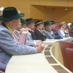 Hoher Trachtler-Besuch im Bayerischen Landtag: Landesvorsitzender Max Bertl vom Bayerischen Trachtenverband mit Mitgliedern des Landesausschusses und der Gauverbände nahmen eine Einladung von Landtagspräsidentin Ilse Aigner an, informierten sich über das politische und bauliche Geschehen im Landtag und nahmen für eine Diskussionsstunde im Plenarsaal Platz.