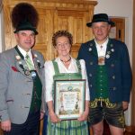 Mit dem Silbernen Gau-Verdienstzeichen konnte Gauvorstand Miche Huber bei der Frühjahrsversammlung des Chiemgau-Alpenverbandes die Trachtlerin Helga Seitz vom Trachtenverein Marquartstein-Piesenhausen auszeichnen. „Diese Ehrung hat sich Helga Seitz verdient, weil sie 25 Jahre lang Trachtenwartin und zehn Jahre lang Röckefrauen-Vertreterin in ihrem Verein war und in diesen Zeiten überaus viel für das Trachtengewand und für die Trachtler-Gemeinschaft geleistet hat“ – so der Gauvorstand bei der Ehrung zusammen mit seinem Stellvertreter Georg Westner  (li.) in Bernau.