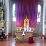 Jeden Sonntag versammeln sich Gläubige in der Pfarrkirche in Haag zum Friedensgebet, insbesondere um für den Frieden in der nahen Ukraine zu beten. An einem Sonntag hatten die Gestaltung der Andacht auf Anregung der Ausschussmitglieder des Reichertsheimer Trachtenvereins Veronika Fluhrer und Claudia Kropf Mitglieder des Trachtenvereins übernommen. Seelsorger Pater Jan Domaratzki leitete den Gottesdienst, Heidi Grundner begleitete mit Harfe und Gesang, Gust Grundner mit der Ziach und Veronika Fluhrer und Claudia Kropf wirkten als Lektoren. Mit dem gemeinsam gesprochenen Gebet „Zu dieser schweren Zeit…“, das im Heimat- und Trachtenboten Nr. 6/2022 veröffentlicht war, wurde die Andacht beschlossen, bevor Pater Jan die Gäubigen mit einem ukrainisch gesprochenen „Gelobt sei Jesus Christus“ verabschiedete.