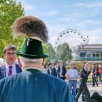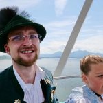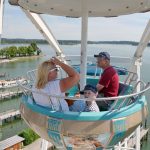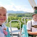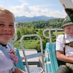 Nach dem emotionalen Höhepunkt, als die Kinder Luzia Huber (GTEV Prien) und Lukas Huber (GTEV Atzing) namens des Bayerischen Trachtenverbandes und des Chiemgau-Alpenverbandes die Bundeskanzlerin Angela Merkel bei ihrer Ankunft am Schiff „Ludwig Feßler“ im Hafen von Prien-Stock begrüßen durften kam es kurz danach zu einem zweiten, diesmal messbaren Höhepunkt. Da derzeit – und wie Michael Feßler von der Chiemsee-Schifffahrt inzwischen mitteilte – noch bis zum 15. September ein 38 Meter hohes Riesenrad direkt am Chiemsee-Ufer steht, war es naheliegend, dass die Trachtenverantwortlichen die Kinder noch zu einer Partie Riesenrad einluden. „Einfach bärig, richtig schön!“ – das waren die Antworten der jungen Trachtler auf die Frage, wie es war, als sie den Chiemsee, die Berge sowie Prien mit seinem Hinterland von einer ganz besonderen Perspektive sahen.