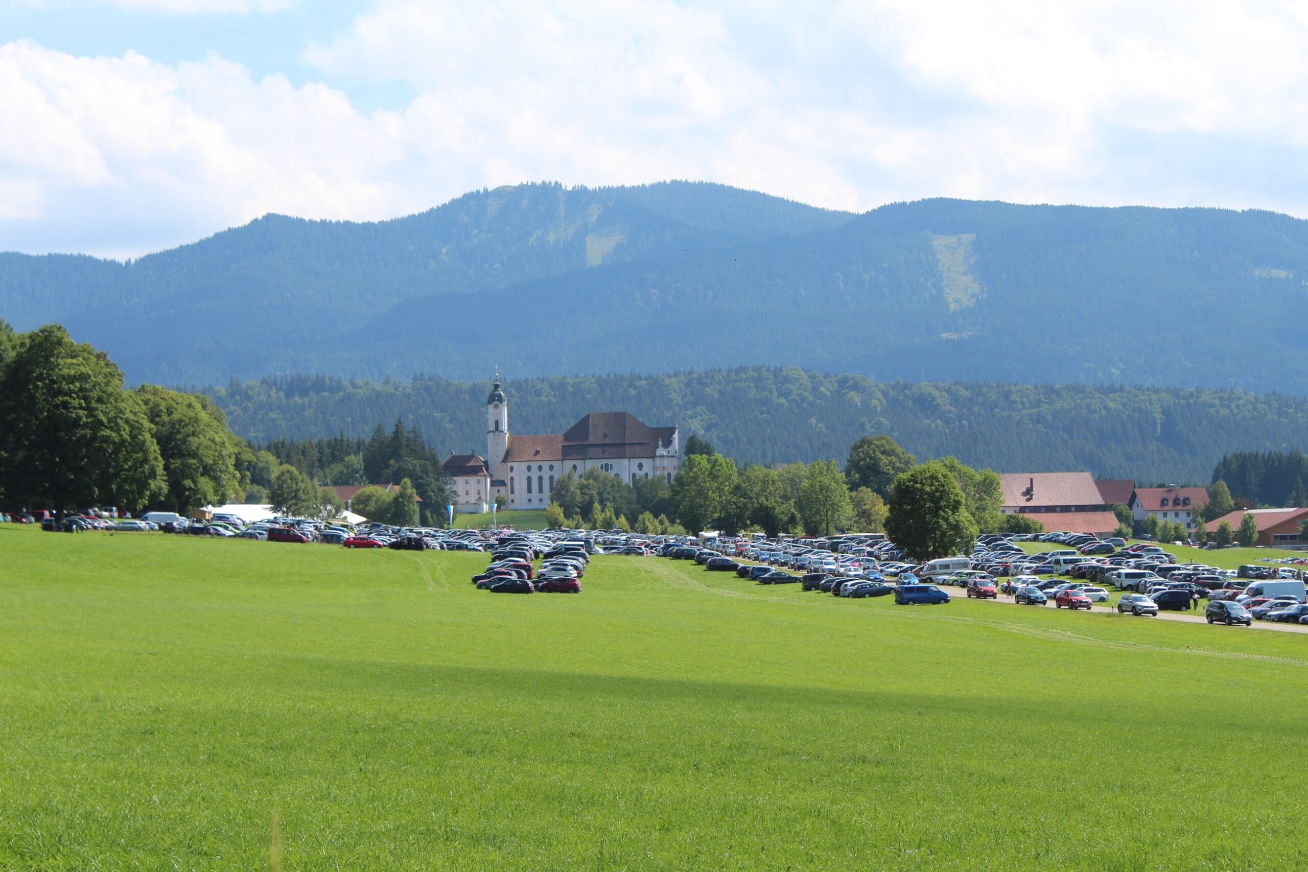 Der heutige Trachtler fährt mit dem Auto zum Trachtenfest, wodurch solche Bilder wie beim Oberen Lechgaufest in der Wies entstehen.
