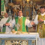 - Pfarrer Michael Vogg (Mitte) feiert mit Pfarrer Dr. Robert Kröpfl (rechts) und Diakon Hans Steinhilber den Gottesdienst.