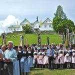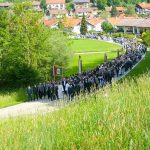 Von seiner allerschönsten Seite zeigte sich der Chiemgau am Sonntag den Trachtlern des Gauverbandes I bei ihrer 68. Bitt- und Dankwallfahrt von Siegsdorf nach Maria Eck. 2500 Trachtlerinnen und Trachtler aller Altersgruppen aus 102 Vereinen des großen Gauverbandes pilgerten bei schönstem Sommerwetter betend den langen Weg hinauf zur Wallfahrtskirche, wo sie von den Berchtesgadener Weihnachtsschützen mit donnerndem Salut begrüßt wurden. Guardian Bruder Franz vom Kloster Maria Eck freute sich, dass sich wieder so viele, und besonders auch viele junge Trachtler gemeinsam auf den Weg gemacht hatten „um als Mitarbeiter Gottes, der Sache des Friedens zu dienen“.