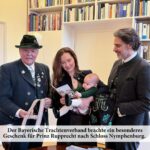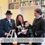 Prinz Rupprecht, Sohn von Prinz Ludwig und Prinzessin Sophie, erhielt als „Weisert“ eine Lederhose vom Bayerischen Trachtenverband. Der „Weisert“ ist eine alpenländische Tradition, bei der zur Geburt eines Kindes Brot oder Hefegebäck verschenkt wird. Der kleine Rupprecht wird die Vorteile dieses praktischen Kleidungsstücks wohl erst später zu schätzen wissen.