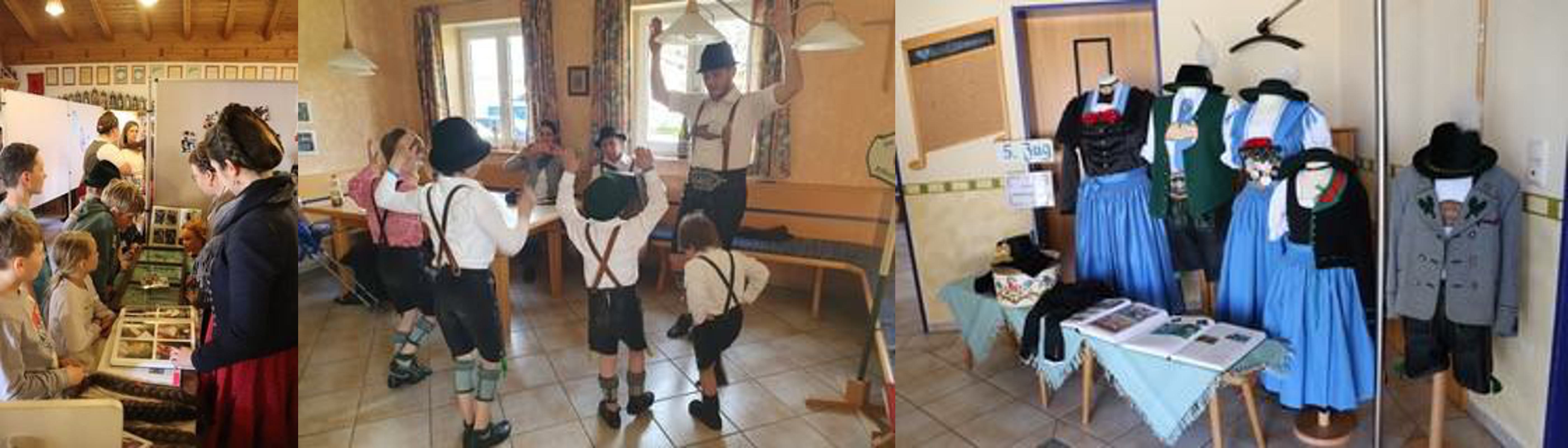 49 Kinder waren teils mit Eltern und Großeltern gekommen und so konnten 10 Gruppen gebildet werden, die nacheinander die Stationen besuchten. An der ersten Station wurden von Christina Siglbauer und Christine Schneider verschiedene Flechtfrisuren und alles rundum den Haarschmuck und die Gretlfrisur gezeigt, die zweite Station wurde von Pfarrer Andreas Ager zu den Heiligenfiguren und kirchlichen Bräuchen gestaltet. An der dritten Station erklärten Franz Hofmann und Matthias Egger die Aufgaben und die Geschichte des Waginger Vereins und an der vierten Station besprachen Isabella Zauner und Veronika Maier die verschiedenen Bräuche im Jahreskreis mit den Kindern. An der fünften Station ging es dann bei Johanna Siglbauer und Heidi Egger um die unterschiedlichen Versionen des Trachtengewandes, währenddessen an der sechsten Station Alois Babinger, Matthias Siglbauer, Sebastian Siglbauer und Merle Mühlbacher das Platteln und Dirndldrehen zeigten. Bei der siebten Station ging es bei Anna Schneider, Maxi Babinger und Bettina König dann um die verschiedenen Tänze und die Kinder durften natürlich hier auch selber schon herumprobieren und mitmachen.