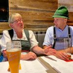 Zu einer transatlantischen-trachtlerischen Begegnung kam es im „Bayerischen Hof“ in Prien a. Chiemsee. Robert („Bob“) Hugel aus New York traf sich als Sprecher der vier Gaubeisitzer beim Gauverband Nordamerika zusammen mit seiner Frau Jutta mit Vertretern des Bayerischen Trachtenverbandes, des Chiemgau-Alpenverbandes sowie der beiden Trachtenvereine der Gemeinde Prien, „Daxenwinkler“ Atzing und Prien. „Mein Vater wanderte 1955 von Endorf nach Amerika aus, seither haben wir enge Verbindungen und Freundschaften mit Bayern und dem Chiemgau, das wollen wir aufrecht erhalten“ – so Bob Hugel, der sich wie schon bei seinen vielen bisherigen Besuchen unter anderem bei Trachten Bartl in Trautersdorf oder bei Stoff-Höfer in Prien immer wieder gerne über aktuelle und gute Trachtengewand-Ausstattung hat beraten lassen. Dazu sagte er: „Wir wollen echt bayrisch sein und unsere Tracht muss in Ordnung und schön sein“. Die Familie Hugel gehört dem Trachtenverein „Schlierachtaler“ in New York mit 60 Mitgliedern und 25 Aktiven an. Im nächsten Jahr ist in New Jersey das alle zwei Jahre stattfindende Gaufest vom Gauverband Nordamerika, dazu wollen sie gerne wieder Freunde aus Bayern willkommen heißen und betreuen. „Und im Mai 2022 wollen wir wieder bei Euch sein, wenn in der Nähe von Starnberg traditionell um den `Bayerischen Löwen` geplattelt wird“ – dies fügte Bob Hugel noch mit besten Grüßen von Nordamerikas Gauvorstand Tom Vogt hinzu. Wie gut der kameradschaftliche Austausch zwischen nordamerikanischen und bayerischen Trachtlern ist, zeigte die Freundschaftsbegegnung in Prien. Sowohl Zweiter Gauvorstand Georg Westner vom Chiemgau-Alpenverband als auch Priens stellvertretender Vorstand Klaus Löhmann und Atzings Trachtenvorstand Michael Schlosser berichteten über ihre persönlichen Erfahrungen und Begegnungen. In den vielen Jahren der gegenseitigen Kontakte waren schon mehrfache und gegenseitige Besuche bei Gaufesten in Nordamerika oder in Bayern. Sowohl Georg Westner als auch Klaus Löhmann waren schon bei Trachtenfesten „über dem Teich“. Und Bob Hugel freute sich, dass er nach seinem Besuch beim Chiemgauer Gaufest in Atzing im Jahr 2017 wieder den damaligen Festleiter und nunmehrigen Vorstand Michael Schlosser traf.