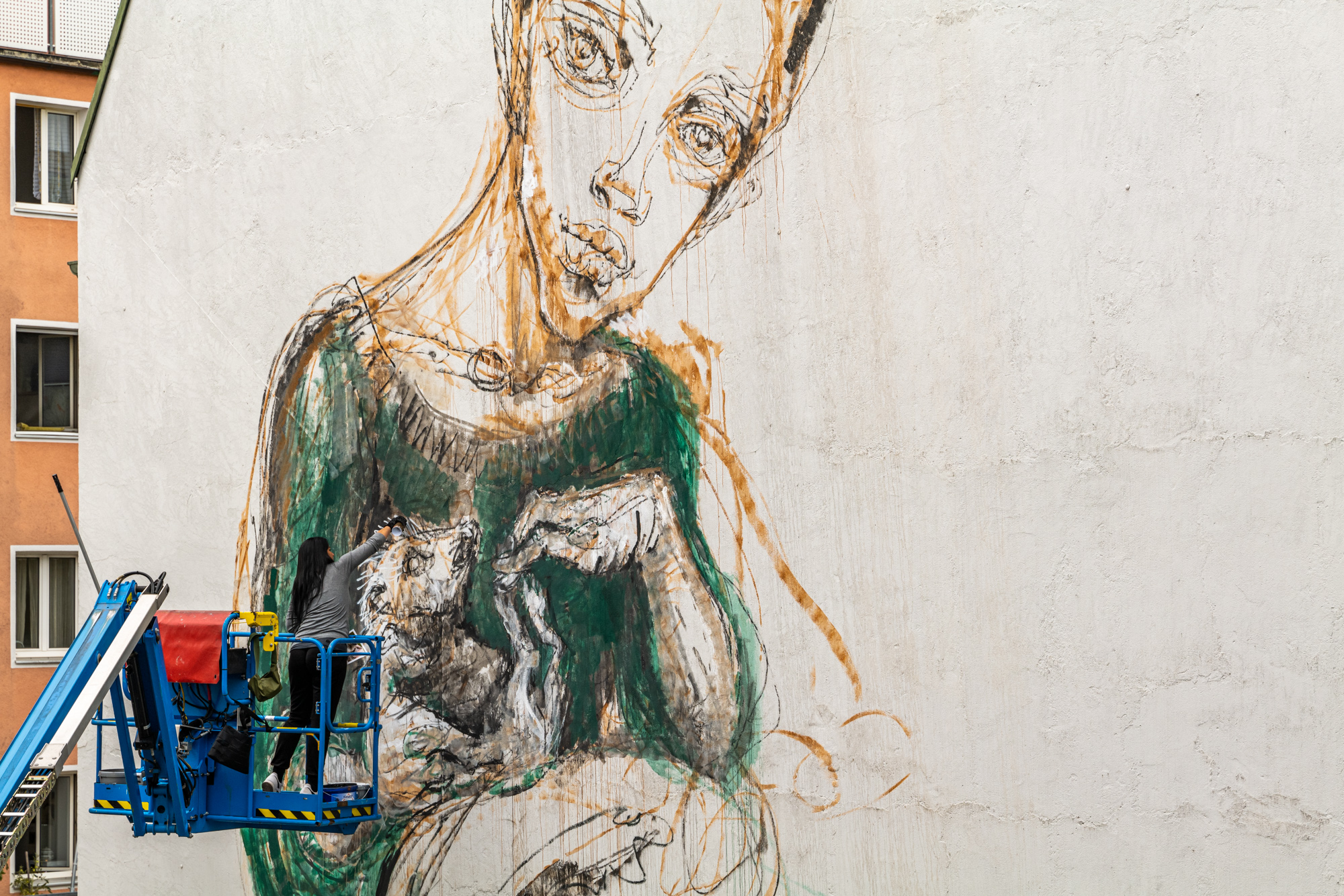 Hera (Jasmin Siddiqui) an der Giebelwand, Herzog-Otto-Straße 9 in Rosenheim