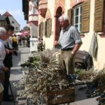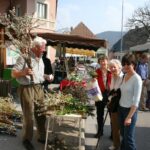 Die Fotos zeigen den weit über die Gemeinde hinaus bekannten „Palmkatzl Sepp“ beim Marktgeschehen in Neubeuern.