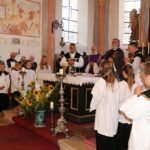 Dekanstellvertreter Pfarrer Fabian Orsetti aus Stephanskirchen  in Vertretung des Ordinariats, Ortspfarrer Christoph Rudolph, Diakon Thomas Jablowski, der von Pfarrer Reuder betreut wurde  sowie Pfarrer Thomas Schwarzenberger aus Erl feierten in Konzelebration den Altardienst begleitet von zahlreichen Altardienern. Das Evangelium der Emmaus-Jünger, das Evangelium des Geburtstages von Josef Reuder, stand im Mittelpunkt des Messgeschehens. Gemeinsam gehen, ein Ziel haben, Fremde miteinzubeziehen, um dann die Wahrheit kennen zu lernen. Diesen Weg der Jünger, so Pfarrer Thomas Schwarzenberger ging auch Josef Reuder in seinem Leben. Der Pfarrer skizierte so in seiner persönlichen Wertschätzung für seinen Glaubensmitbruder, das Kennenlernen und den gemeinsamen Weg, den wir gegangen sind, weil wir uns zufällig trafen. Aus dieser Verbundenheit, kam die Frage “Kannst Du mir einmal aushelfen“ welche Reuder mit „Ja“ beantwortete. So war er dort in Erl, wie auch im Pfarrverband, manchmal darüber hinaus, als Ruhestandspfarrer aktiv. Mit zunehmendem Alter und den damit verbundenen Einschränkungen  immer weniger, bis es nicht mehr ging. Josef Reuder erbat keine Bekundungen am Grab, diesem Ansinnen wurde entsprochen.  Ein langer Trauerzug folgte der Beerdigungsmusik zur Priestergrabstelle wo die Urne der geweihten Erde übergeben wurde. Pfarrer Fabian Orstetti sprach dabei die Gebete der Kirche, wo man im gemeinsamen Gebet um die Fürsprache Mariens bat. Wir verabschieden uns vom Menschlichen, so Pfarrer Thomas Schwarzenberger – dies wird jeden von uns treffen, die Seele aber wird bei uns bleiben, und uns erinnern. Ein Ehrensalut der Gebirgschützenkompanie galt Kompaniepfarrer Josef Reuder für sein Mitwirken.