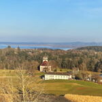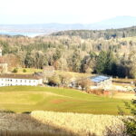 Seitens von Röselsberg (Gemeinde Frasdorf) mit Blick in Richtung Chiemsee ist gut zu erkennen, dass das Kita-Bauwerk mit inzwischen errichteten Solarmodulen auf dem Dach fortan ein wichtiger Bestandteil des Wildenwarter Ensembles sein wird.