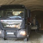 Während im April 2018 der Spatenstich zum Projekt „Aubergtunnel“ in Altenmarkt erfolgte und die Betonlieferungen bereits seit Mitte Juli laufen, kam es nun zum feierlichen Tunnelanschlag. 2021 sollen die ersten Fahrzeuge durch den 440m langen Tunnel rollen. Dass es bis dahin noch einiges zu tun gibt, weiß Thomas Janzen, Geschäftsführer der Betonlieferfirma Transportbeton Traunstein GmbH: „Wir planen, dass bis Weihnachten 2018 die Spritzbetonlieferungen für die Kalotte des Tunnels beendet sind. Gearbeitet wird dabei im Dreischichtbetrieb rund um die Uhr von Montag bis Sonntag. Ab Januar 2019 geht es dann mit dem Spritzbeton für die Strosse und Sohle des Tunnels weiter.“