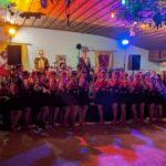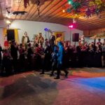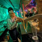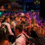Besonders erfreulich war der große Andrang, insbesondere junger Erwachsener, sodass das Trachtenheim binnen kürzester Zeit wieder rappelvoll wurde. Die Gäste wurden von einer aufwendig gestalteten Dschungelkulisse empfangen, die mit zahlreichen von der Decke hängenden Tieren und einer urigen Holzhütte mit Klammeraffen beeindruckte, welche einen großen Teil der Bar bildete. Dabei wurden sogar echte Bäume aus dem heimischen Wald verbaut, wodurch die Holzhütte besonders authentisch wirkte. Die meisten Besucher kamen passend zum Motto verkleidet – als exotische Tiere wie Papageien, Leoparden und Giraffen, als tropische Früchte, als Forscher oder ironisch als Holzfäller – und trugen so zu einer fröhlichen Atmosphäre bei.