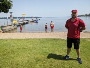 Die Liegefläche am Strandbad ist weiterhin für Besucher kostenlos zugänglich und Rettungsschwimmer passen am Steg auf, dass nichts passiert. Der Steg wird, wie mir Rettungsschwimmer Simon versicherte,  regelmäßig gereinigt.