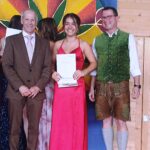 Danach gab Schülersprecherin Jana Baumgartner, einen kurzen humorvollen Rückblick auf ihre Schulzeit seit dem Jahr 2019 und erwähnte die ereignisreichen Abschlussfahrten nach Kroatien, Wien, den Gardasee und London. Wenn sie und viele andere jetzt auch ein bisschen Angst, vor dem, was jetzt kommt, hätten, erinnerte sie daran, was alle bis jetzt schon geschafft hätten – „wir haben so viele letzte Male schon hinter uns“, so dass alle den weiteren Weg sicher auch gut schaffen würden. Sie und die Klassensprecher dankten Lehrerkollegium, Direktorat, Verwaltung und Eltern für die liebevolle und umsichtige Begleitung in den vergangenen Schuljahren und überreichten liebevoll ausgesuchte Geschenke an viele Lehrer.