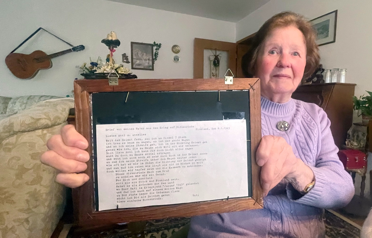 Anneliese Flori mit dem Brief, den ihr Vater vor 80 Jahren aus Finnland an ihre Mutter und sie starb.