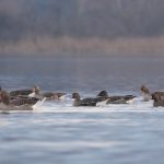 Auf dem See sind noch viele Wintergäste, wie die Schellente, auch wenn die Schneebedeckung bei uns am Chiemsee diesen Winter eher mau war. Auf den Feldern gehören neben den Graugänsen auch einige Saatgänse und Blässgänse dazu. Diese wurden jedoch absichtlich von einem Modellflieger aufgeschreckt und suchten Zuflucht auf dem See.