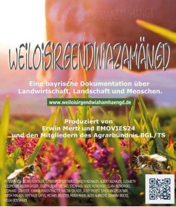 „Weiloisirgendwiazamhängd“ („Weil alles irgendwie zusammenhängt“), so der Titel des neuen Filmes, der auf Initiative des Agrarbündnis BGL/TS von Regisseur und Kameramann Erwin Mertl gedreht worden ist. In 90 Minuten setzt er die Sorgen und Nöte, aber auch die Hoffnungen von kleinen Bauernhöfen eindrucksvoll in Szene. Kurzweilig, informativ, kritisch und immer mit einer Prise bayrischem Humor. Wer seine bayrische Heimat liebt, sollte sich diesen Film unbedingt ansehen.