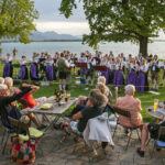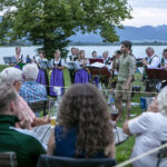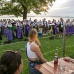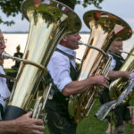 Das Programm war unterhaltend gestaltet – beim zweiten Stück, der Schnellpolka „Auf der Jagd“ (Johann Strauß Sohn) wurde der Jagdeffekt von den Schlagwerkern lautstark umgesetzt. Viele Märsche forderten die Musikanten – darunter der zündende Marsch „Kameraden auf See“, den die Blasmusikanten mit Gesang untermalten: „Wir sind Kameraden auf See! Komm’, Mädel, nun gib mir den Abschiedskuß, Sei tapfer und treu, wenn ich scheiden muß! Und fahren wir heute hinaus, Wir kommen ja wieder nach Haus. Wir stehen wie Felsen in Luv und Lee, Wir sind Kameraden auf See!“ Ansager und Klarinettist Thomas Strohmayer führte unterhaltsam und informativ durch den Abend, band das Publikum ein und überbrachte auch Geburtstagsgrüße. Nachdem mit dem Marschklassiker „Alte Kameraden“ der Schlussakzent gesetzt war, begann das bis dahin trockene, aber windige Wetter umzuschwingen und es setzte leichter Regen ein, der sich im Laufe der Nacht zu einem Unwetter entwickeln sollte. Am Ende des „kameradschaftlichen Blasmusikabends“ wurden die Musikanten von der Wirtin Uschi auf eine Brotzeit eingeladen und man ließ den Restabend gemeinsam ausklingen. Der Musikverein bedankt sich beim Team vom Strandkiosk Luise für die Gastfreundschaft und dem Veranstalter Mike Wielandner von der Tourist Info Übersee am Chiemsee für den Mut, die Veranstaltung durchzuziehen.