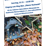 Pünktlich zum 3. Advent wird am Sonntag, 15. Dezember um 13:00 Uhr erneut der Überseer Krippenweg im Buchwald eröffnet. Den Zugang zum Weg findet man an der Südseite des Buchwaldes in der Straße „Oberer Buchwald“.