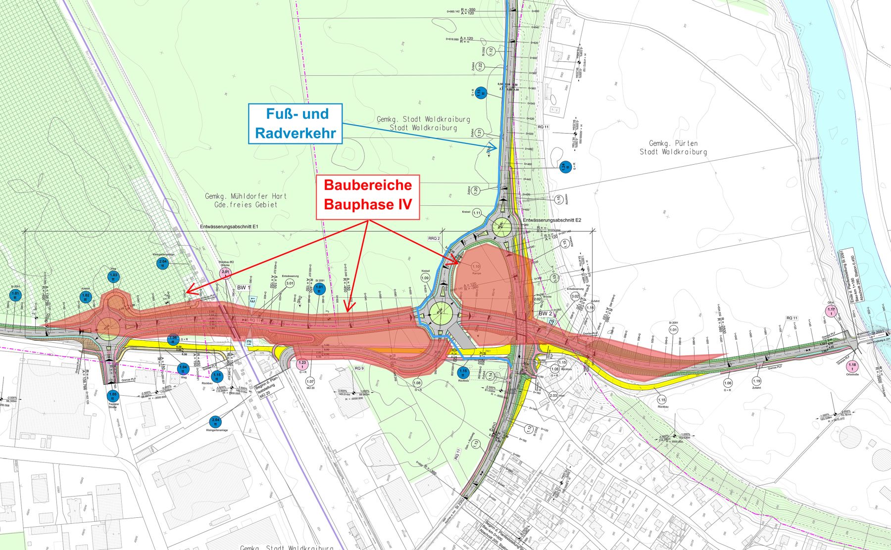 Der Übersichtsplan zeigt den Baubereich während der Bauphase IV