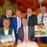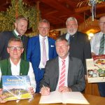 Die Wasserkraft und ihre Nutzung für umweltfreundliche Energie war Anlass für den Bayerischen Umwelt- und Staatsminister Marcel Huber, dem Samerberg einen Besuch abzustatten. Auf Initiative von Kreisrat Peter Schrödl und vom CSU-Kreisverband Rosenheim informierte sich Minister Huber bei einer Rundfahrt über die Aktivitäten und Sorgen der seit 99 Jahren bestehenden Elektrizitätsgenossenschaft Samerberg. Nach dem Besuch des Elektrizitätswerks Gernmühle hieß Landtagsabgeordneter Klaus Stöttner im Entenstadel des Gasthauses Entenwirt in Törwang zahlreiche Betreiber von kommunalen und privaten Wasserkraftwerken aus dem Voralpenraum willkommen und stellte sich der Diskussion (über die Versammlung berichten wir noch gesondert). Im Rahmen der Samerberg-Visite trug sich der Umweltminister auf Einladung von Bürgermeister Georg Huber in das Goldene Buch der Gemeinde Samerberg ein. Zum Dank überreichte ihm Bürgermeister Huber den Bildband „Samerberg – Paradies im Chiemsee Alpenland“.