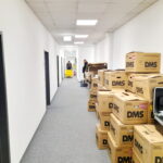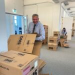 BU3: Generalstabsmäßig erfolgte die Aufteilung der Kartons und der Möbel anhand von Farb-Aufklebern auf die jeweiligen Stockwerke und Büros.