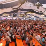 hö/Fotos: Leitsmüller – Blick ins volle Festzelt und Musikgruppe „Kupfadache“