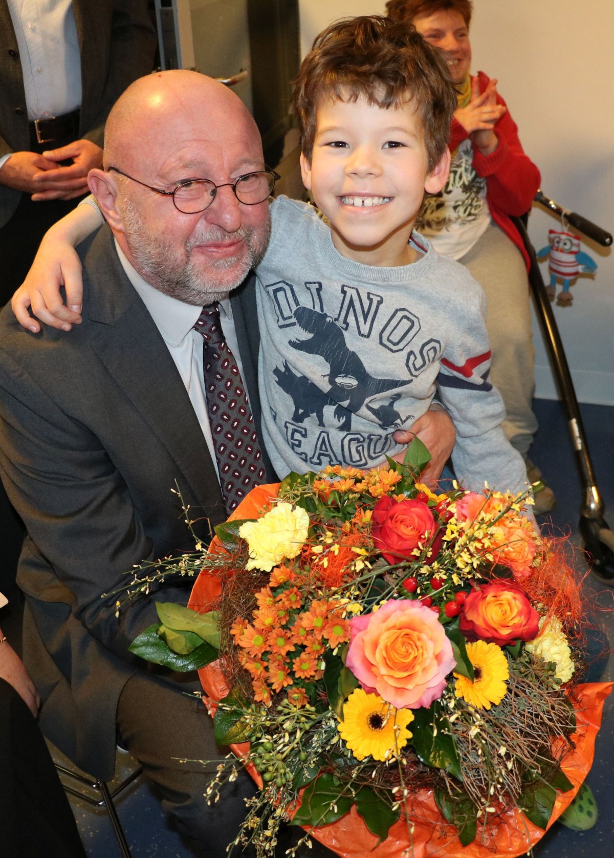 „Pfüa Gott Herr Kuhn“. Maxi nimmt mit einem großen Blumenstrauß Abschied