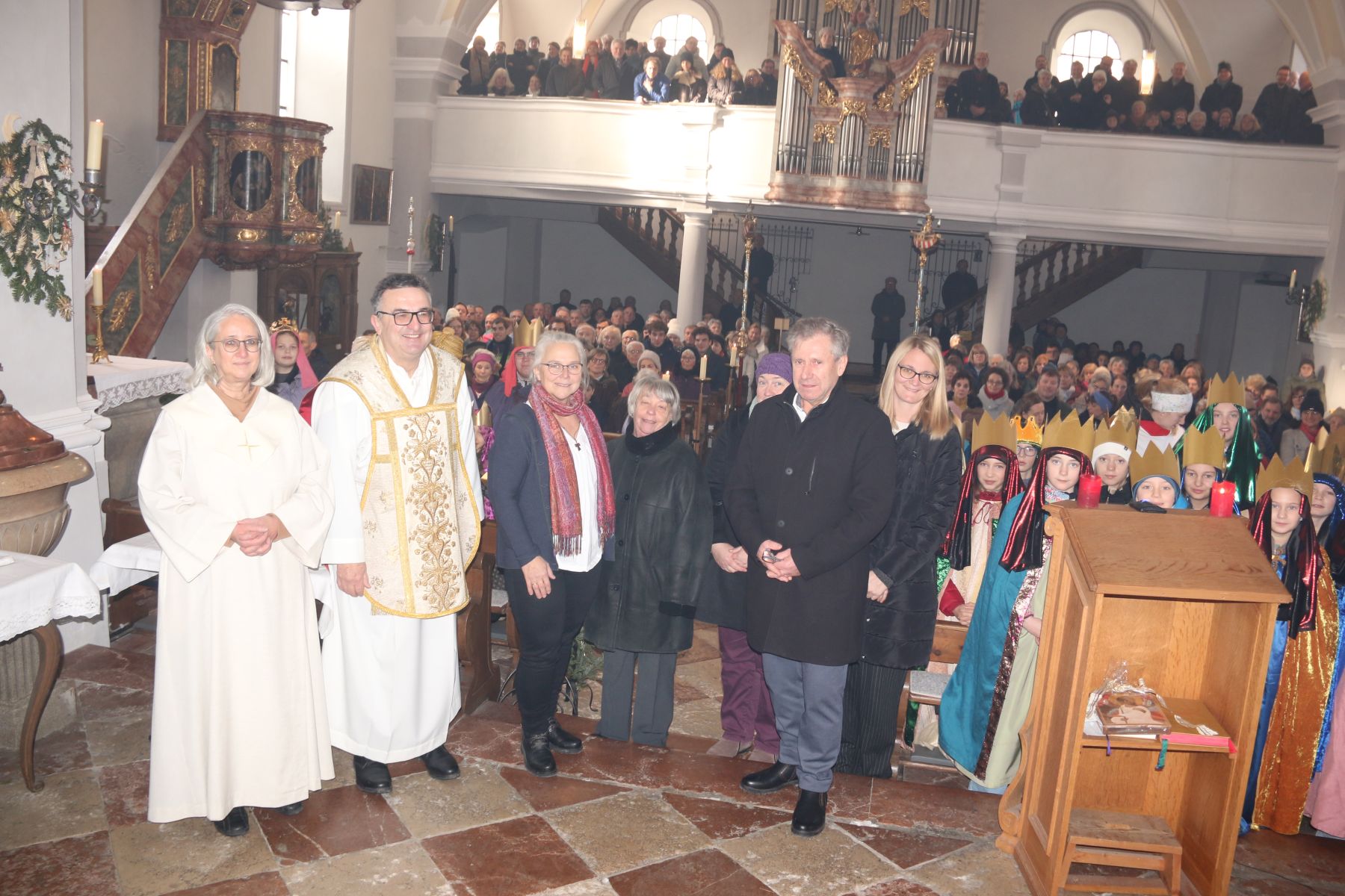 v.l. Manuela Bauer Gemeindereferentin, Pfarrer Christoph Rudolph, Gundula Langer, Barbara Heinrich, Elisabeth Purainer, 2. Bürgermeister Wolfgang Sattelberger, Nicol Brunner
