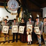 1. Gauvorstand Pankraz Perfler gratulierte auch zum Vereinsjubiläum. Ein „Geschenk“ hatte er natürlich auch dabei, und so erhielten aus seiner Hand für ihre zahlreichen Verdienste um die Trachtensache Thomas Niedermaier, Franz Mühlhuber, Bernhard Zehetmaier und Otto Langer das Gauehrenzeichen des Bayer. Inngautrachtenverbandes in Silber. Die höchste hier zu verleihende Stufe „in Gold“ erhielt für seine jahrzehntelange und umfassende Arbeit in der Trachtensache Thomas Bayer.