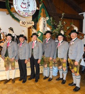 Aus den Händen des 1. Gauvorstandes Pankraz Perfler erhielten für ihren umfangreichen Einsatz für die Trachtensache das Gau-Ehrenzeichen des Bayer. Inngau-Trachtenverbandes: (von links) Bernhard Zehetmaier (in Silber), Otto Langer (in Silber), Thomas Bayer (in Gold), Franz Mühlhuber (in Silber), Thomas Niedermaier (in Silber), 1. Gauvorstand Pankraz Perfler