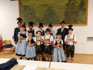 Siegerfoto: Vordere Reihe (v. links) Rosalie Pflüger, Magdalena Mayer, Simon Wallner, Xaver Grosse, Antonia Kotter, Benedikt Huber Hintere Reihe (v. Links) 1. Vorstand Hans Riepertinger, Sepp Bauer, Marinus Huber, Katharina Perl, 1. Kassier Hans Prankl