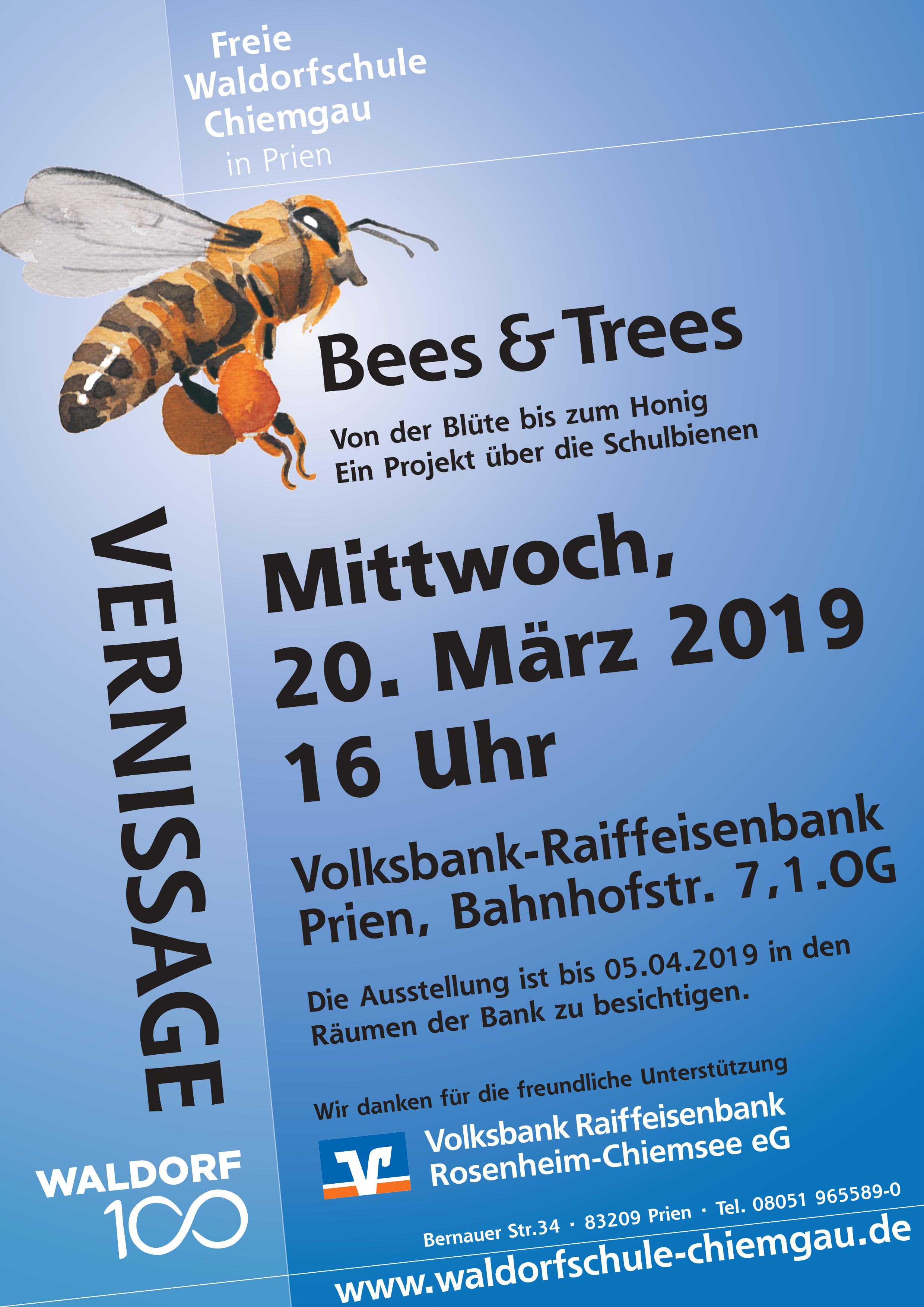 Am Mittwoch, 20. März, 16 Uhr lädt die Freie Waldorfschule Chiemgau mit freundlicher Unterstützung der Volksbank Raiffeisenbank Prien zur Vernissage ein. In den Räumen der Bank wird die Ausstellung Bees&Trees eröffnet. Diese Ausstellung wird konzipiert und thematisch begleitet von Friderike Rose, sie sieht das Projekt unter dem Motto „Von der Blüte zum Honig“ und möchte mit der Dokumentation aufrufen, dass Jede und Jeder etwas für den Schutz von Wildbienen tun kann. Zur Vernissage sind alle Interessierten eingeladen, die Ausstellung ist bis 5. April in den Räumen der Bank in der Bahnhofstraße 7 zu den üblichen Öffnungszeiten zu besichtigen.