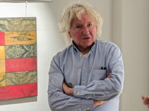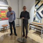 Statt einer klassischen Ansprache führte August Schmitt dann die Gäste persönlich durch die Ausstellung und gab spannende Einblicke in die Entstehung seiner Werke.