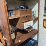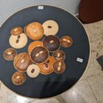 Ein Highlight des Rundgangs war die Präsentation eines Tisches, der aus einem alten Wagenheber gefertigt wurde. Hier wird das Talent des Künstlers deutlich, Materialien wie Holz, Schiefer oder Metall zu kombinieren und scheinbar Wertloses in etwas völlig Neues und Einzigartiges zu verwandeln.