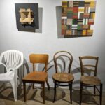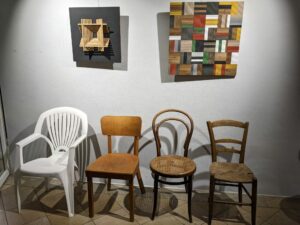 Die Ausstellung zeigt ein breites Spektrum von Arbeiten, die die Grenzen zwischen Kunst und Handwerk verschwimmen lassen. Besonders auffällig ist Schmitts Vorliebe für Holz: Alte Stühle, Möbelstücke oder Gebrauchsgegenstände wie Schneidbretter werden von ihm gesammelt, auf kreative Weise veredelt und in neue, kunstvolle Objekte verwandelt. Ebenso entwirft er formschöne Werkzeuge, die nicht nur funktional, sondern auch ästhetisch ansprechend sind.
