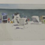 Dr. Irmingard Weise begrüßte die zahlreichen Besucher – die meisten waren  von auswärts gekommen, was an den vielen Münchner Autokennzeichen zu erkennen war. Dr. Weise berichtete von dem thüringisch-bayrisch geprägten Lebenslauf des Künstlers, der 1977 seine Tätigkeit als freischaffender Architekt und Aquarellist begann, seit 2003 eine eigene Aquarell-Malschule betreibt, Malreisen in Europa und nach Nordafrika und Asien organisiert und Dozent an diversen Malakademien im In- und Ausland war, so z.B. 2019 Gastdozent an der School of Fine Arts in Athen.  Wie der Titel der Ausstellung „unterwegs“ schon sagt, seien die gezeigten Bilder auf seinen Reisen wie u.a. nach Darß. Marokko oder Griechenland entstanden und würden einen Ausschnitt seiner bildgewordenen Seherlebnisse zeigen. Was Dr. Weise ganz besonders von ihm liebt, sind seine Kalender, die es seit vielen Jahren von ihm gibt.