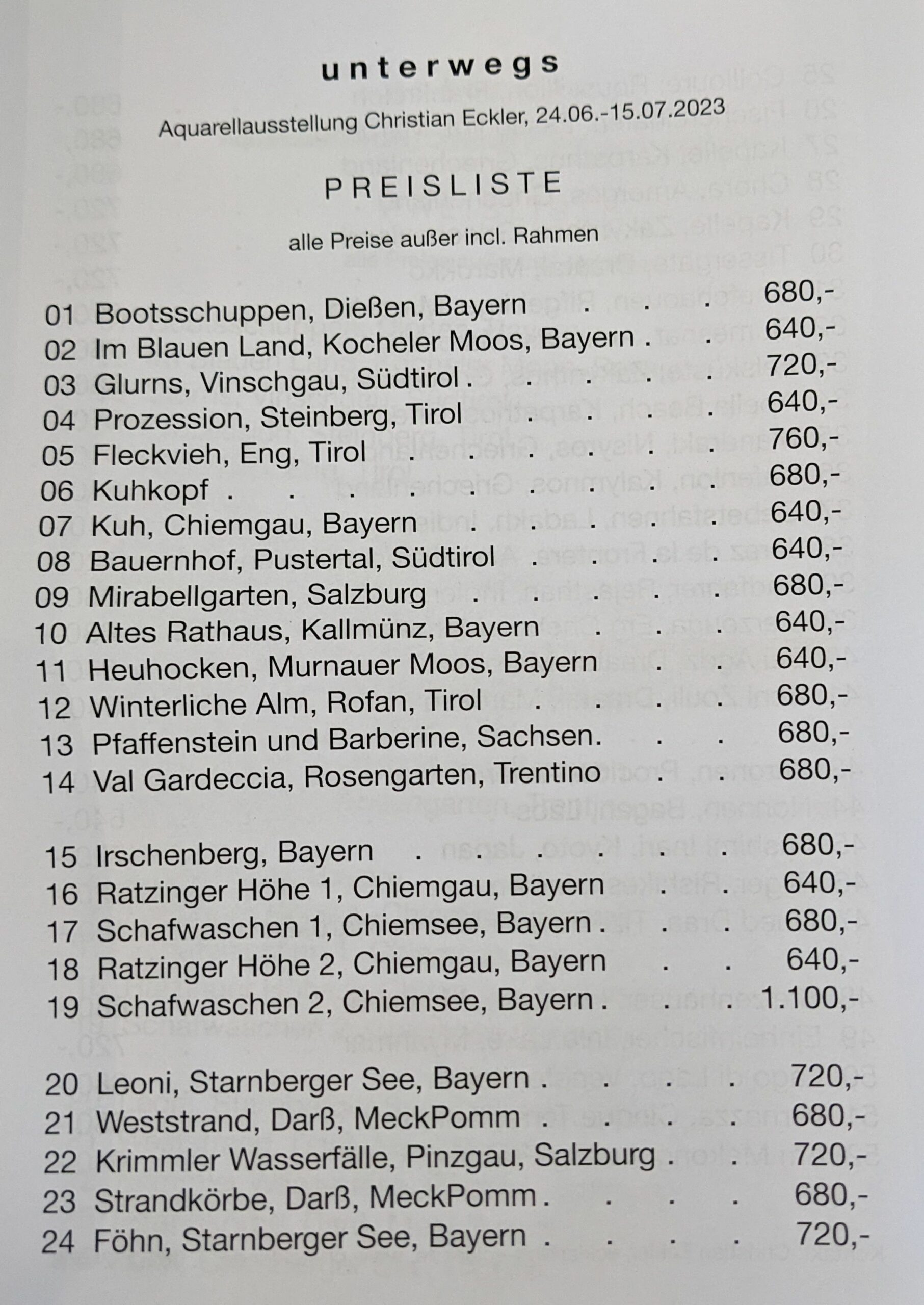 Ausstellung Aquarellist Christian Eckler im Liendlhof