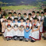 – Die 14 bestplatzierten Dirndl und somit Mitglieder der kommenden Gaugruppe zusammen mit den beiden Gauvorplattlern Michi Memminger aus Marquartstein (rechts) und Franz Weingartner aus Bernau. (vorne Mitte die drei Erstplatzierten Dirndl)