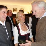 Die bayerische Staatsministerin Michaela Kaniber bei der Jahresversammlung des Verbandes der Forstberechtigten im Chiemgau im Hotel Post in Ruhpolding, hier im Gespräch mit Altlandrat Hermann Steinmaßl und dem früheren Präsidenten des bayerischen Landtags Alois Glück (rechts vorne).